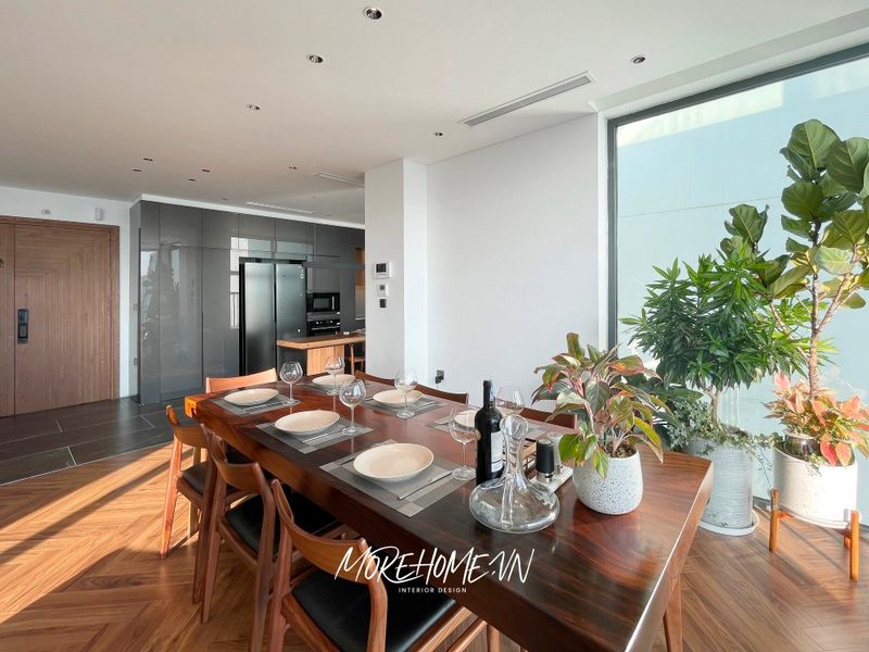 Morehome có kinh nghiệm thi công các công trình nội thất phòng ăn chung cư tại Hà Nội. Nếu bạn có nhu cầu thi công trọn gói nội thất chung cư ở Hà Nội, hãy liên hệ Morehome để được tư vấn và có báo giá tốt nhất.